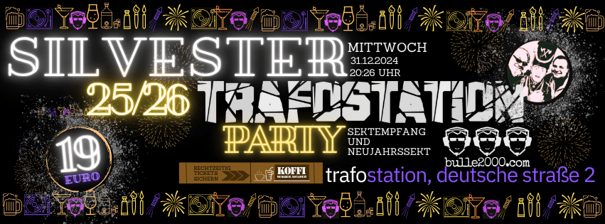 Um 20:26 Uhr startet der Abend mit einem prickelnden Sektempfang, tanzt euch warm mit DJBulle und stoßt um 0 Uhr gemeinsam mit einem Neujahrssekt auf 2026 an.