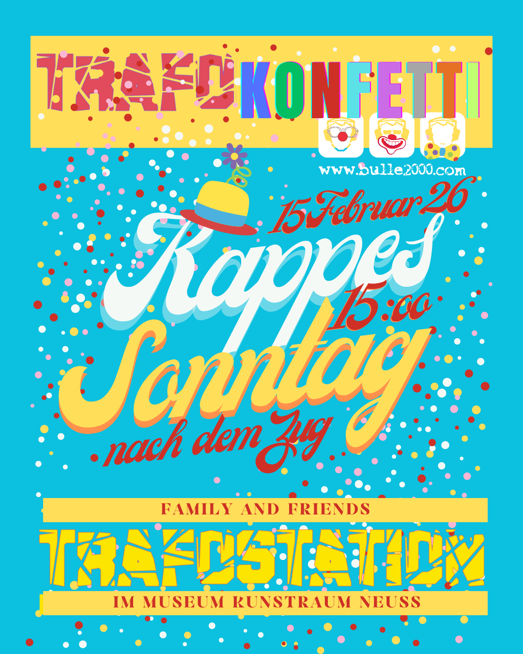 Am Sonntag folgt wie jedes Jahr das karnevalistische Kontrastprogramm: Trafokonfetti 🎉 – die Kappessonntags-Party. ⬅️ klick hier